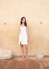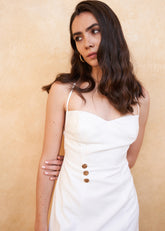 L’abito midi di Sartoria Toscana è realizzato in leggero cotone e viscosa, Made in Tuscany, effetto lino. Impreziosito da bottoni artigianali in bronzo, Otto e Mezzo è un modello dal fascino iconico, passe-partout perfetto per numerose occasioni. Si distingue per la sua attitudine estremamente femminile e sensuale.