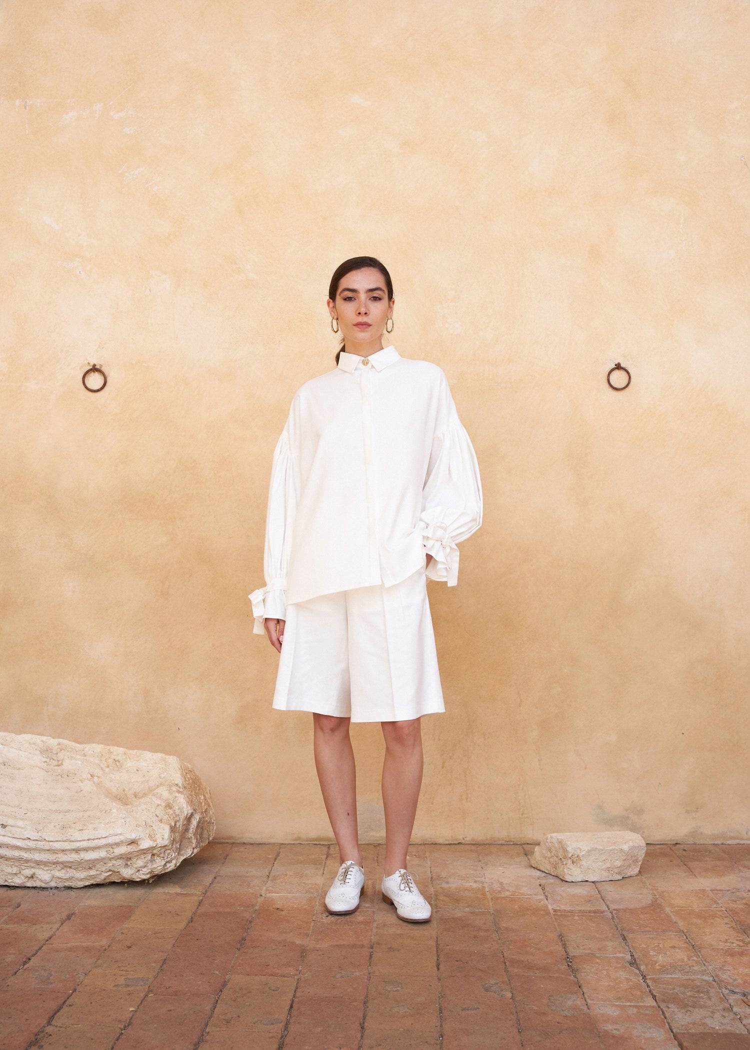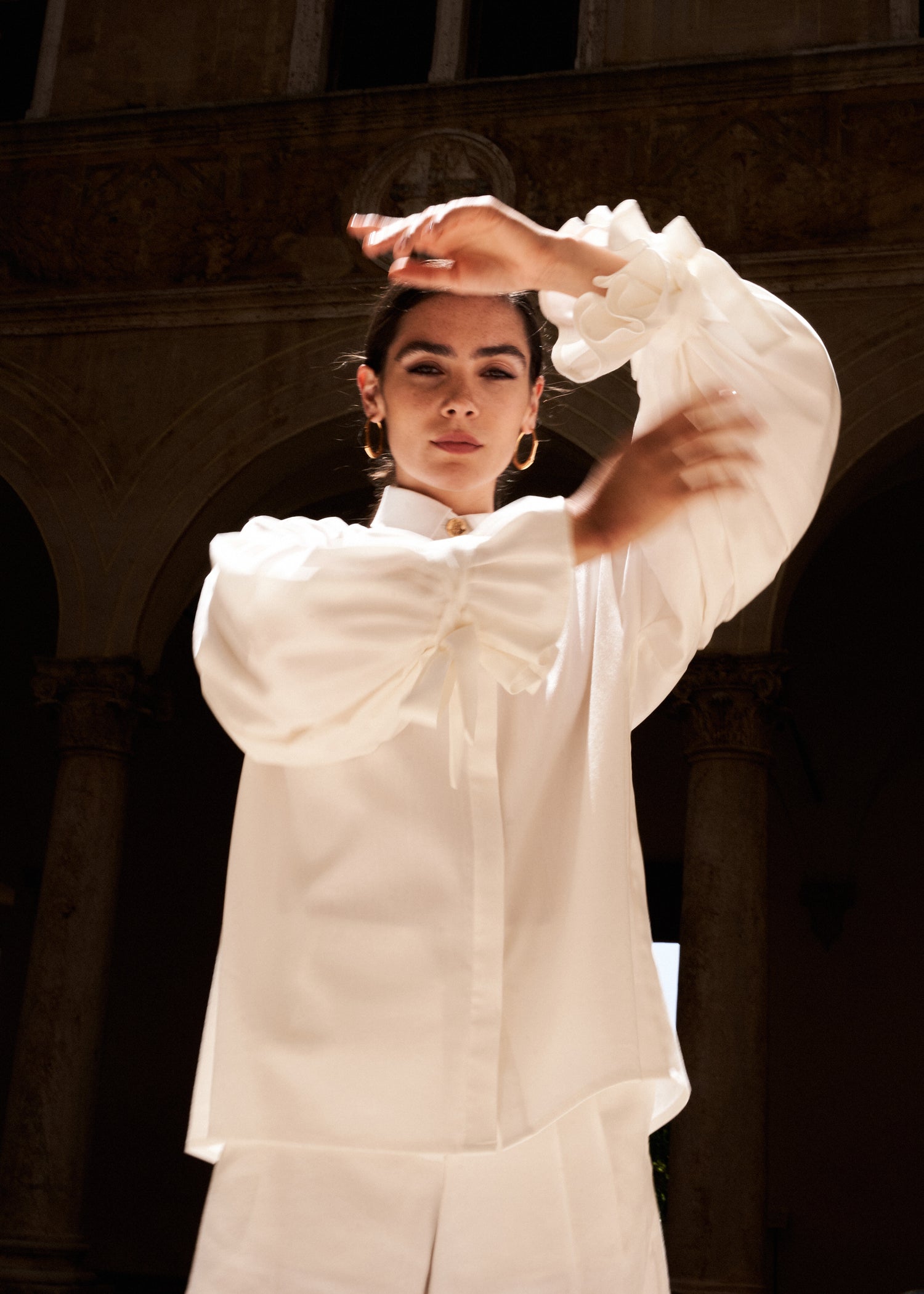 This happens in collaboration with excellent Tuscan producers along a very short supply chain. The garments are only available on pre-order to reduce environmental impact, and they are crafted by our artisans in ten working days.