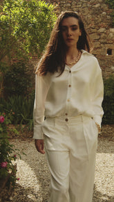 Il Pantalone a vita alta di Sartoria Toscana è realizzato in leggero cotone e viscosa, Made in Tuscany, effetto lino. Impreziosito da bottoni artigianali in bronzo, Cipresso è un capo irrinunciabile nel guardaroba di ogni donna di qualsiasi età. Si distingue per la sua attitudine estremamente elegante, versatile e rilassata.