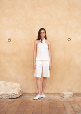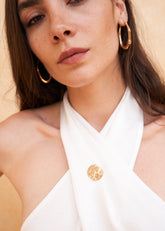Il Top con scollo incrociato di Sartoria Toscana è realizzato in morbido e brillante tessuto lyocell TENCEL TM, un filato esclusivo Made in Tuscany, estratto dalla polpa di alberi di Eucalipto. Impreziosito da bottoni artigianali in bronzo, Grano è un capo must e all season, perfetto come sottogiacca. Si distingue per la sua attitudine estremamente raffinata e per il suo tocco vellutato.