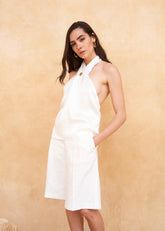 Chiusura: sul collo con tre bottoni gioiello piccoli